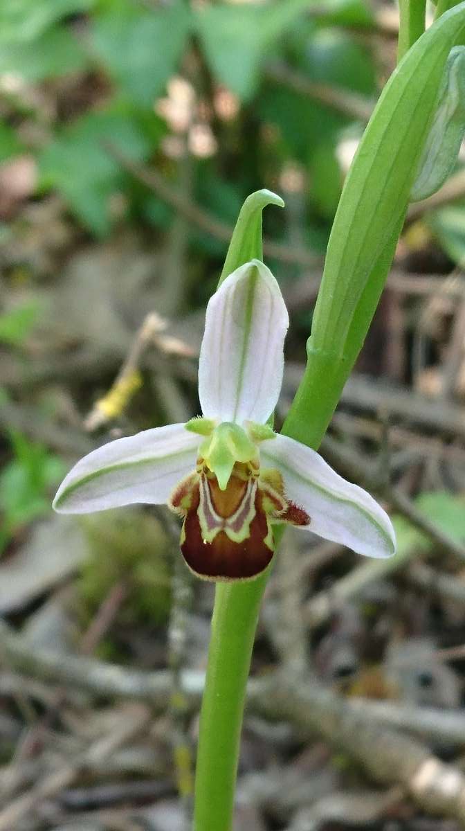 Auf der zweiten Biotopfläche erfasste Binzenhöfer im Jahr 2021 drei verschiedene Orchideenarten mit insgesamt 230 Pflanzen und heuer sogar knapp 300 Exemplare fünf verschiedener Arten! Und dass, obwohl die Orchideen auf dieser Fläche aufgrund der Verbuschung in den letzten Jahren gänzlich verschwunden waren. Darunter erstmals auch die Bienen-Ragwurz (Ophrys apifera), die zerstreut und lückenhaft in den Muschelkalkgebieten Unterfrankens vorkommt und nur äußerst selten an den Keuperhängen im Landkreis Haßberge. Die Blütenlippen der exotisch anmutenden Ragwurzarten täuschen durch Duft, Zeichnung und Behaarung Insekten-Weibchen vor, so dass die Männchen angelockt werden und die Pflanze dabei bestäuben. Bei der Bienen-Ragwurz kommt es in der Regel aber zur Selbstbestäubung.