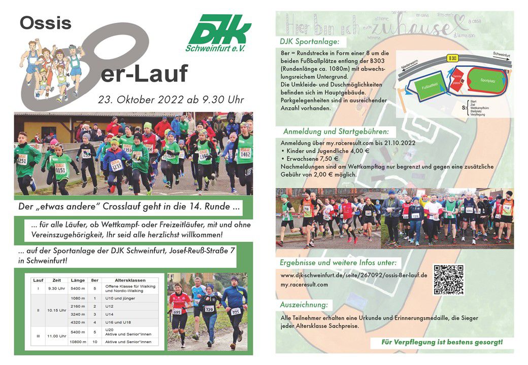 SCHWEINFURT. Nach einer Corona-bedingten Pause startet die Neuauflage von Ossis 8er-Lauf an den Sportanlagen der DJK Schweinfurt nicht mehr traditionell nach dem Jahreswechsel, sondern zu einem neuen Termin im Herbst. Am 23. Oktober geht der etwas andere Crosslauf bereits in die 14. Runde, seit inzwischen einigen Jahren in Gedenken an Ossi Baunach, der die Leichtathletikabteilung der DJK Schweinfurt 47 Jahre als Übungsleiter und 20 Jahre als Abteilungsleiter geprägt hat und im November 2014 seiner kurzen, schweren Krebserkrankung erlag. Die Idee des 8er-Laufs, auf einer Rundstrecke in 8er-Form um die beiden Fußballplätze der DJK zu laufen, kam vor 15 Jahren von Ossi Baunach.