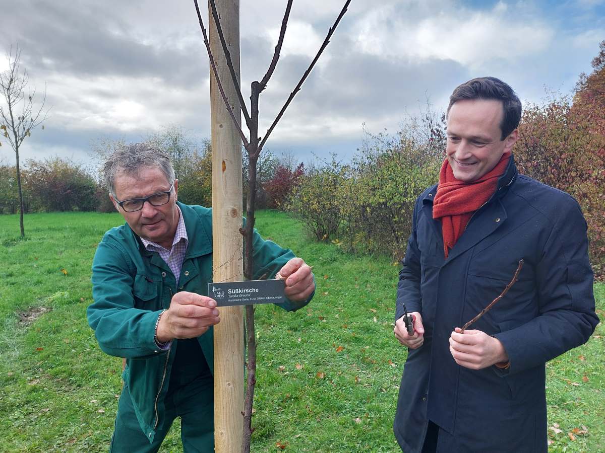 „Wir wollen in unserem Jubiläumsjahr diese schöne, alte Sorte im Landkreis Schweinfurt wieder etablieren und bei der Bevölkerung bekannt machen“, sagte Landrat Florian Töpper bei der Pflanzaktion. „Mein Dank geht an Kreisfachberaterin Brigitte Goss, die mit dieser besonderen Kirsche in Oberlauringen eine tollen Fund gemacht hat. Die Kirschsorte möge bald wieder – wortwörtlich – in aller Munde sein.“